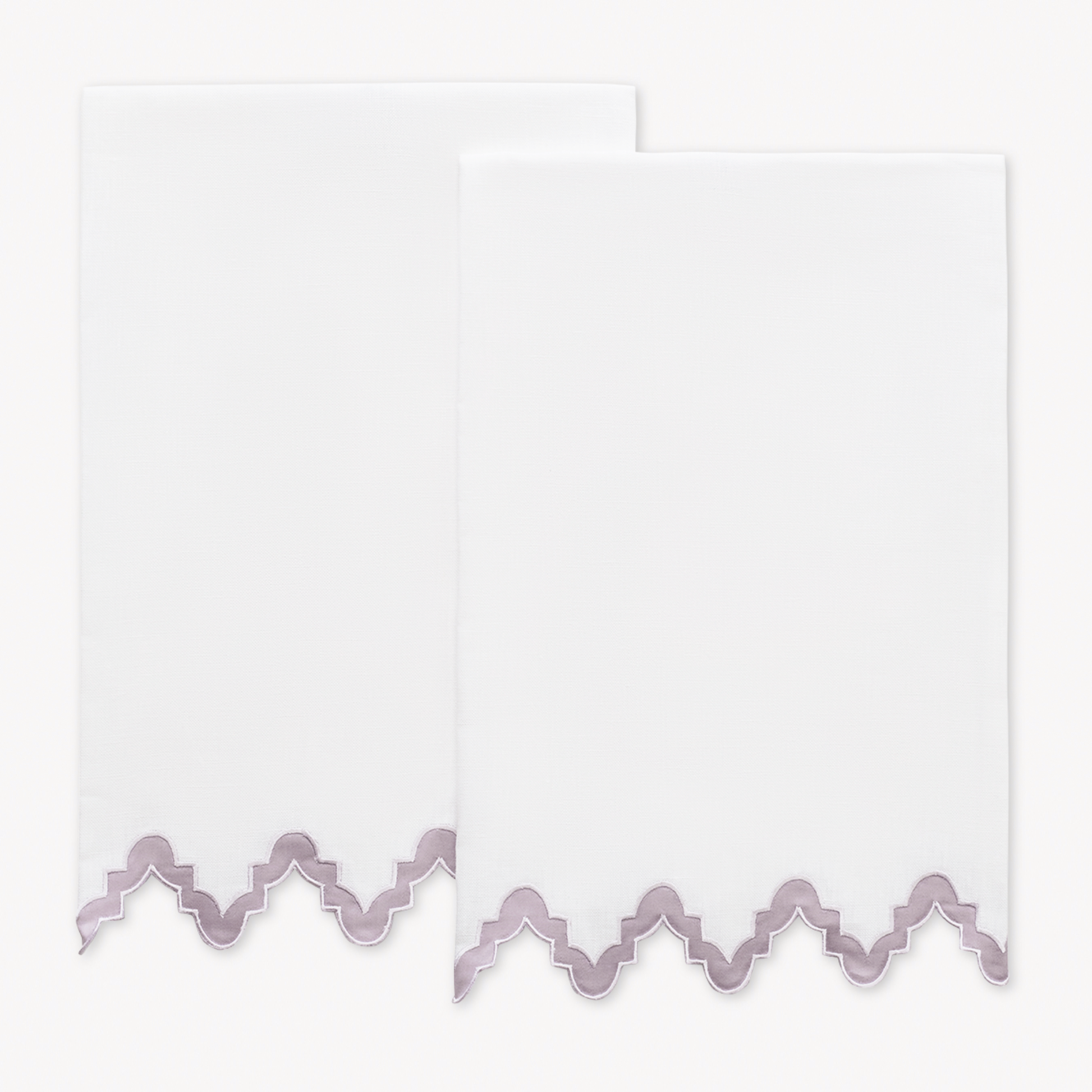 The Matouk Aziza Guest Towel brings the zig-zag applique in Nocturne sateen to beautiful, 100% linen. This alluring style gives a distinctive design to everyday moments.