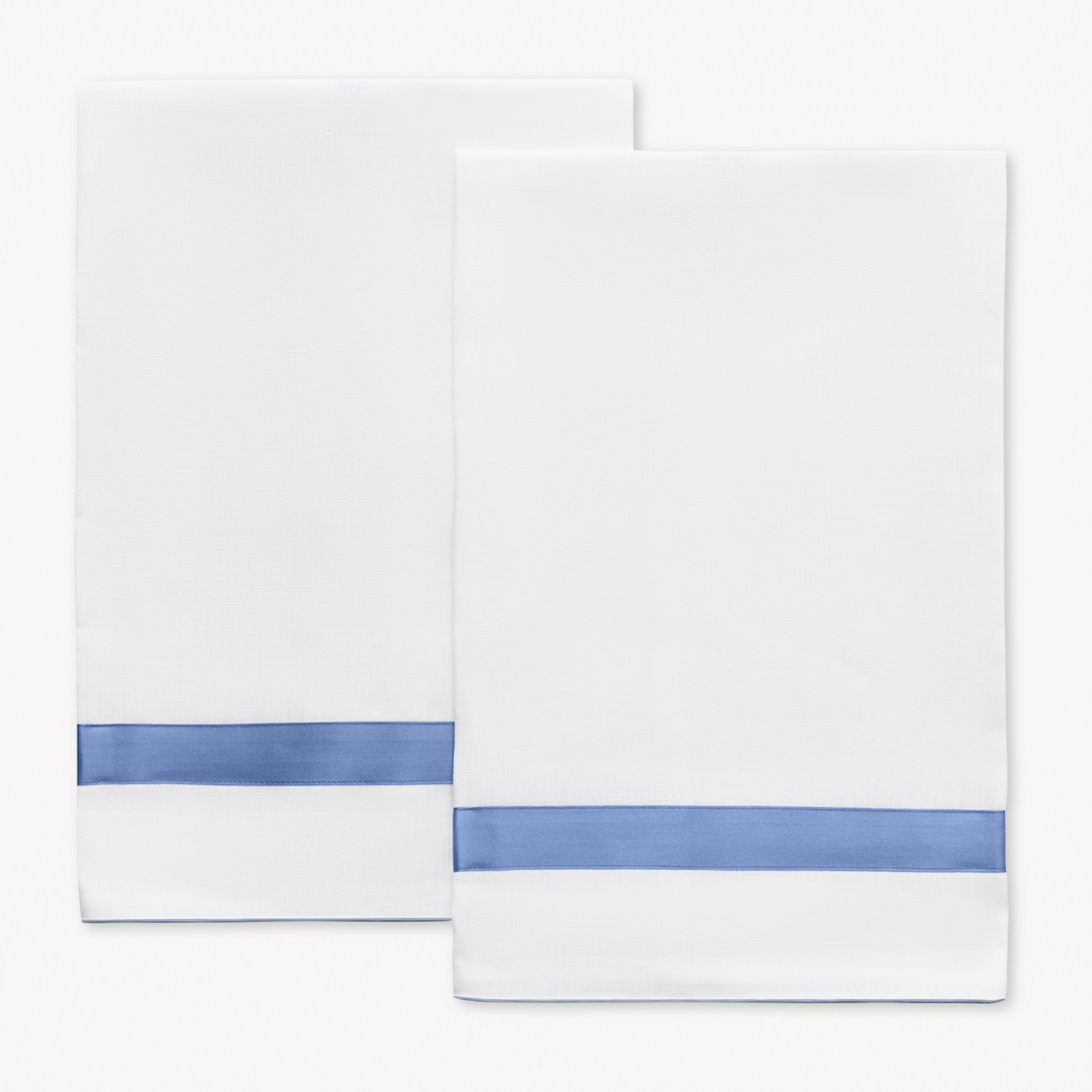 Matouk Lowell Guest Towels feature the beloved Lowell design reimagined as a linen guest towel, where white Valentina linen with Nocturne sateen trim offers a tailored, polished touch.