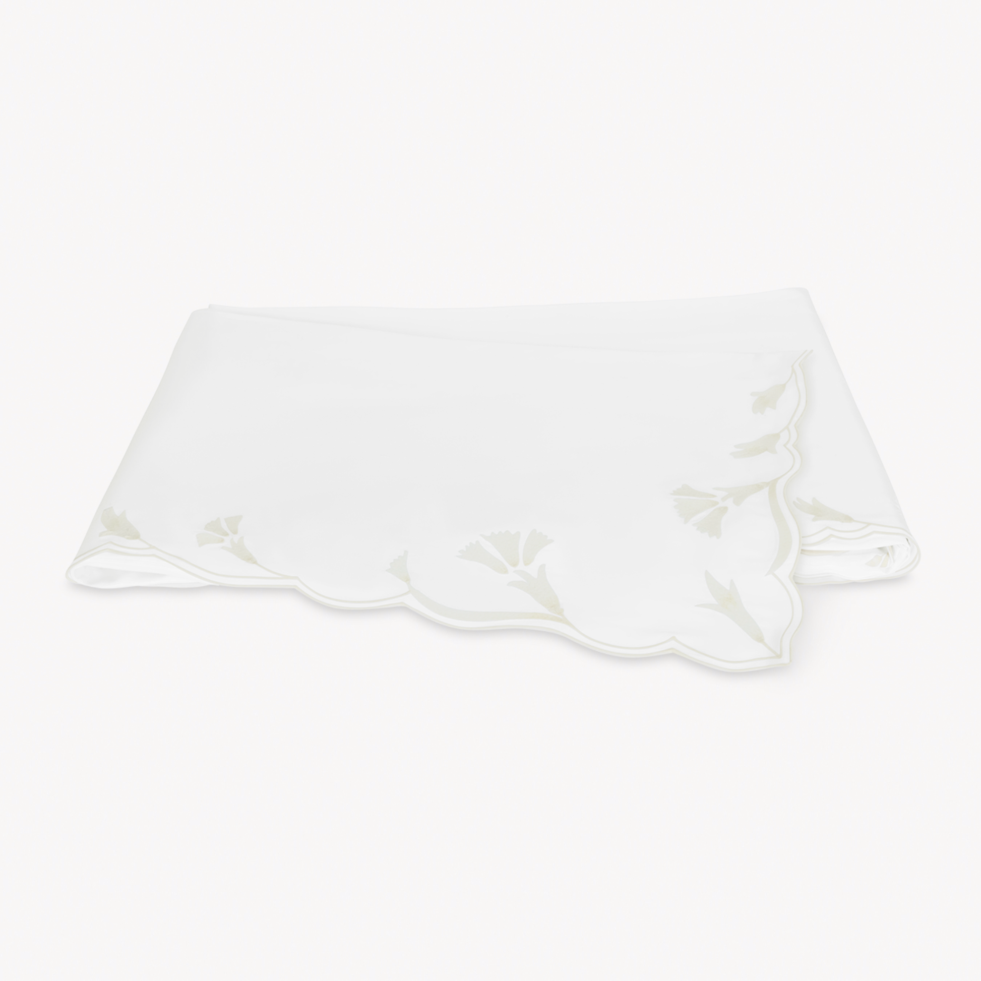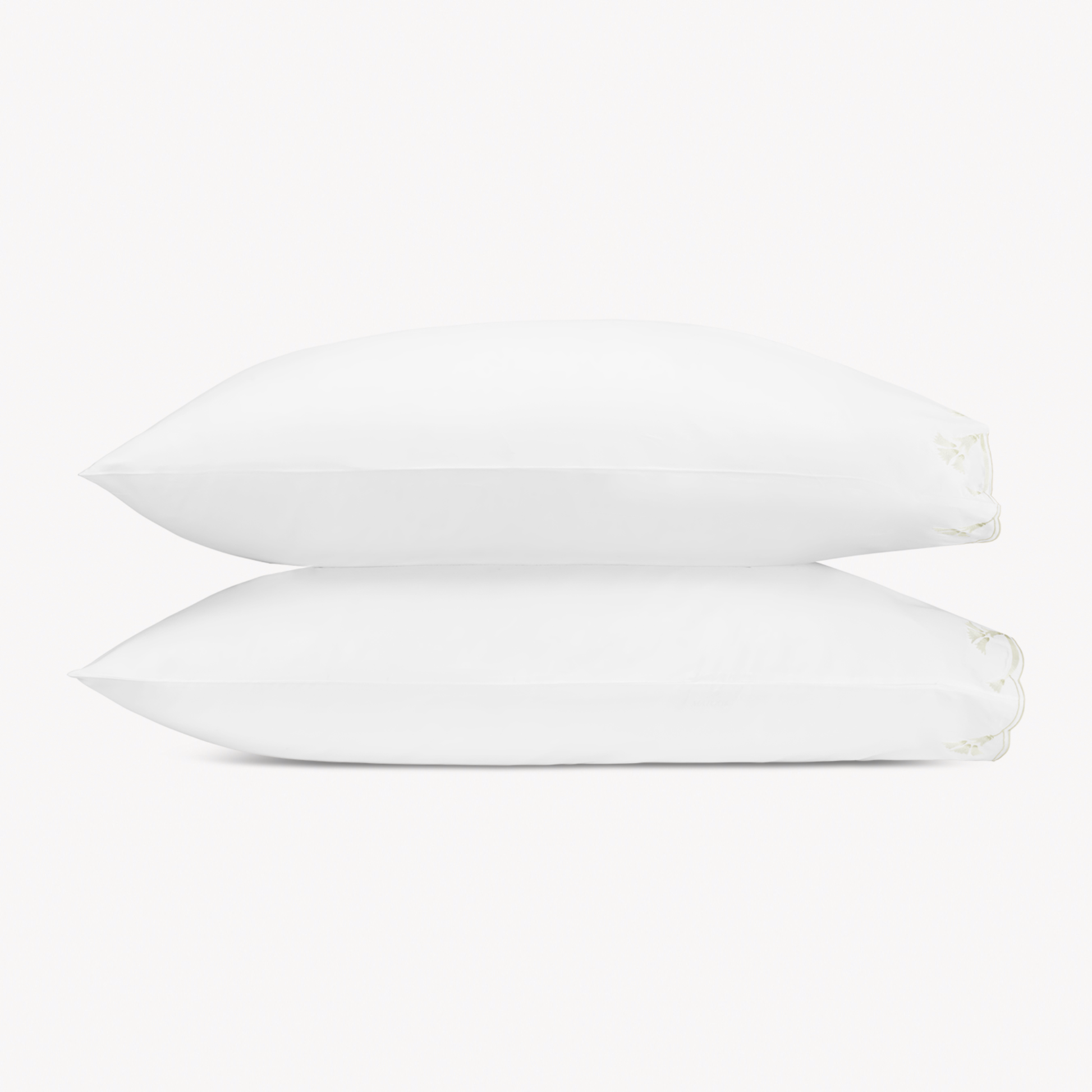 Matouk's Marcella bedding has delicate scalloped florals on luminous sateen that offer depth and softness to a classic design. Marcella’s exquisite embroidery combines timeless elegance with luxurious comfort, creating a graceful centerpiece for any bedroom.