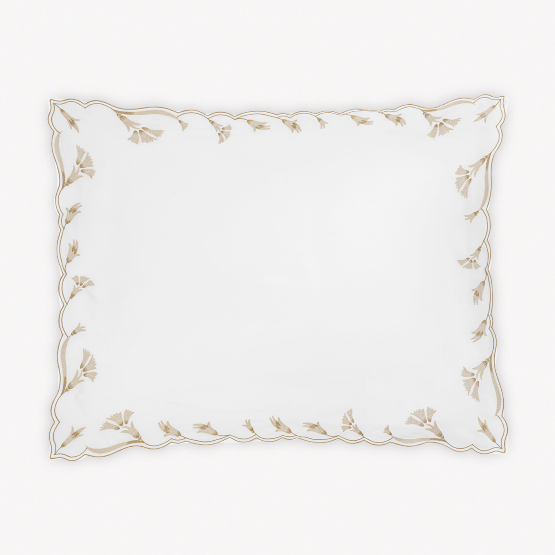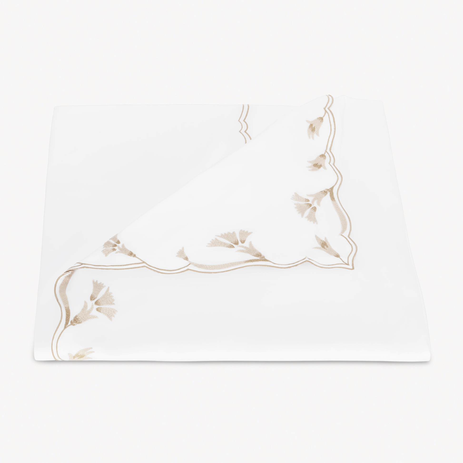 Matouk's Marcella bedding has delicate scalloped florals on luminous sateen that offer depth and softness to a classic design. Marcella’s exquisite embroidery combines timeless elegance with luxurious comfort, creating a graceful centerpiece for any bedroom.
