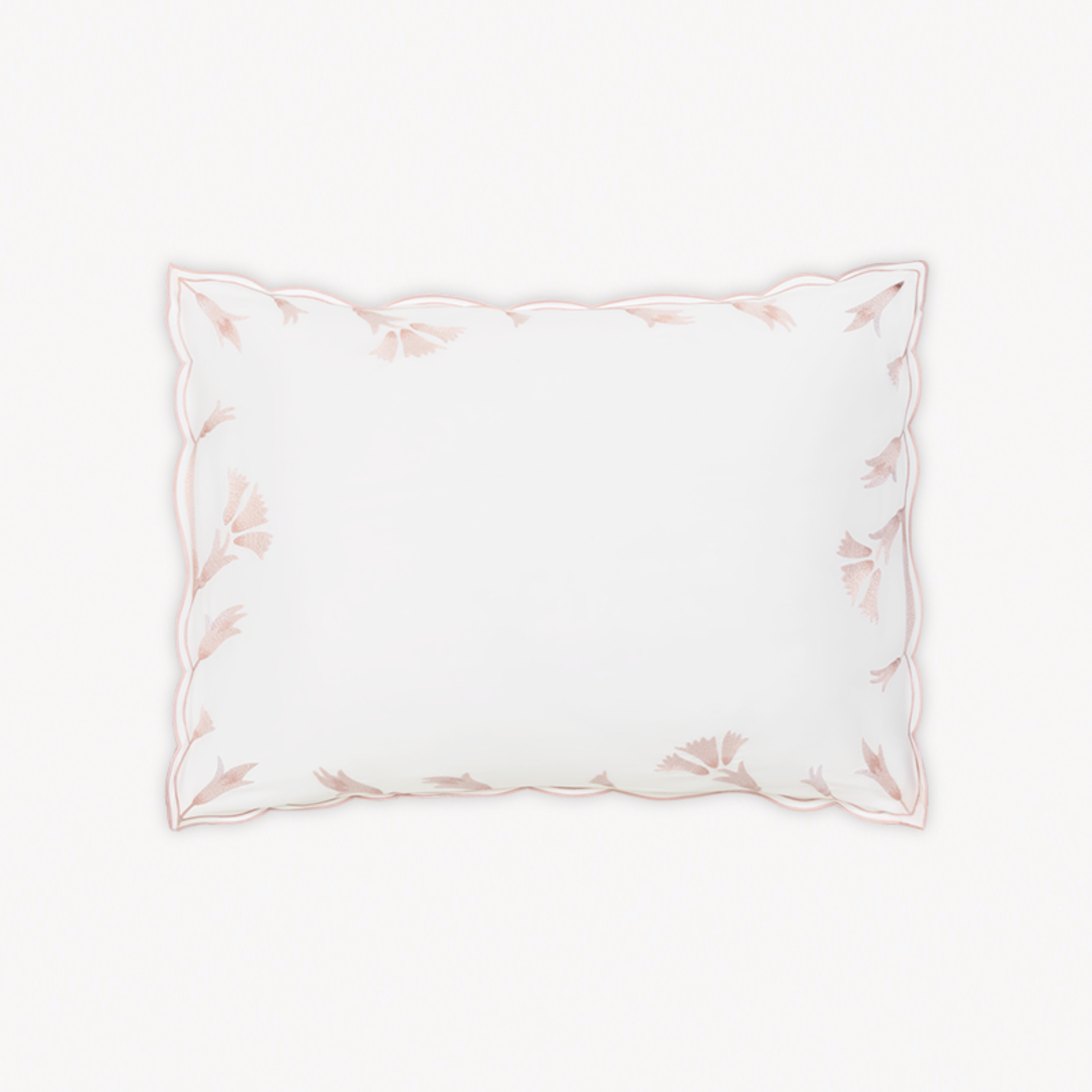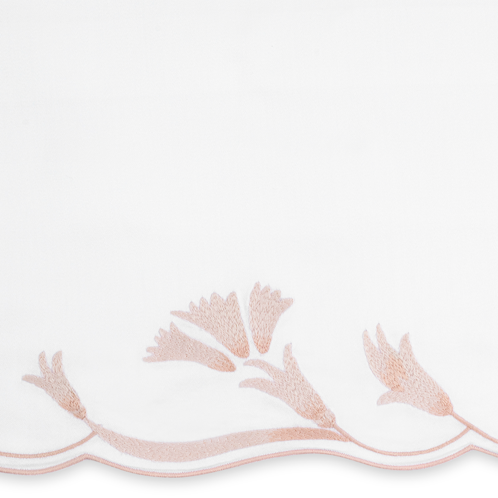 Matouk's Marcella bedding has delicate scalloped florals on luminous sateen that offer depth and softness to a classic design. Marcella’s exquisite embroidery combines timeless elegance with luxurious comfort, creating a graceful centerpiece for any bedroom.