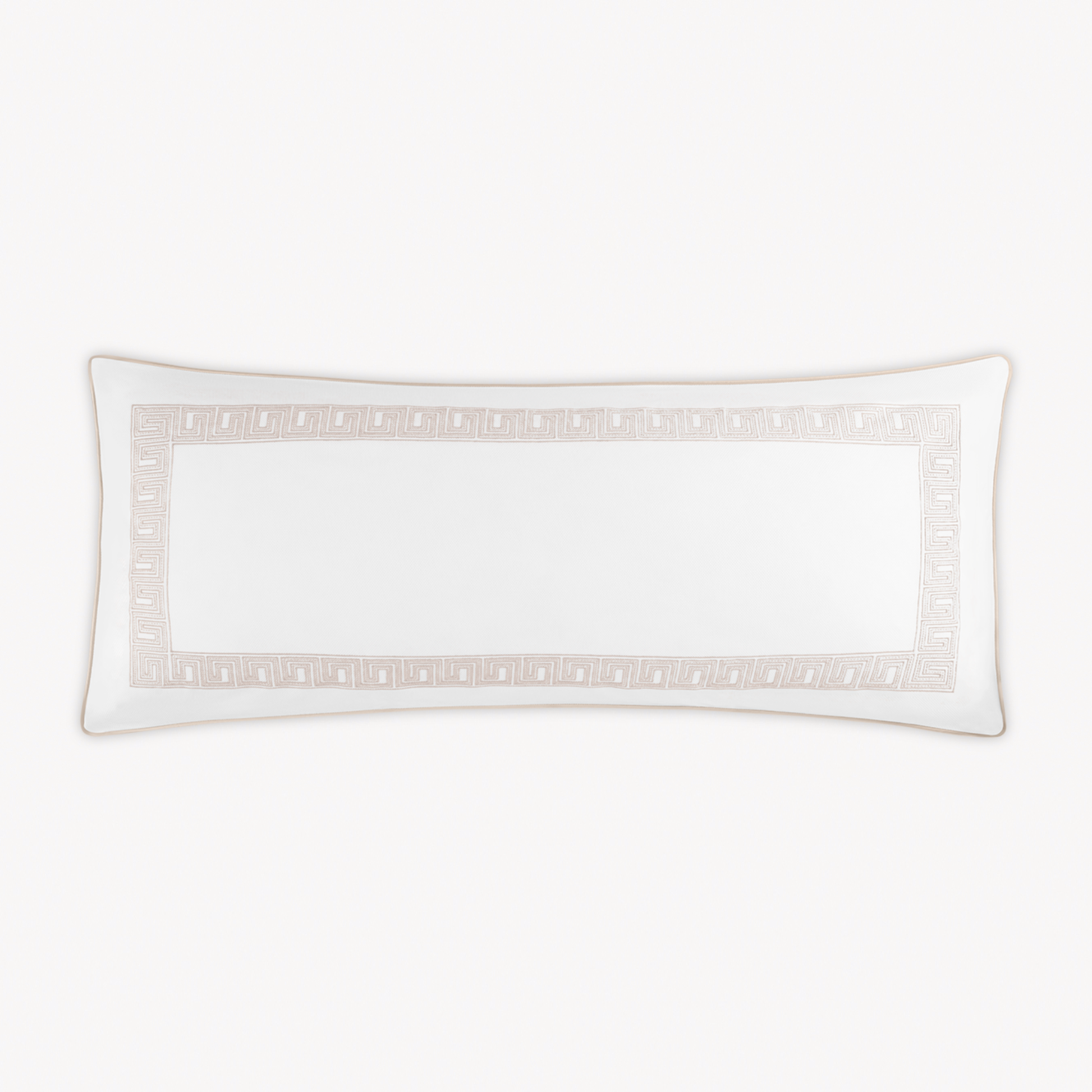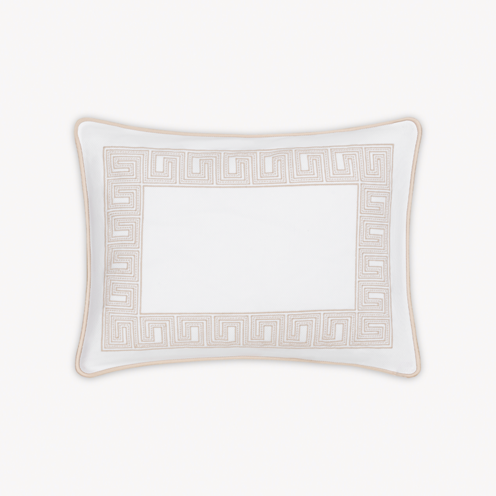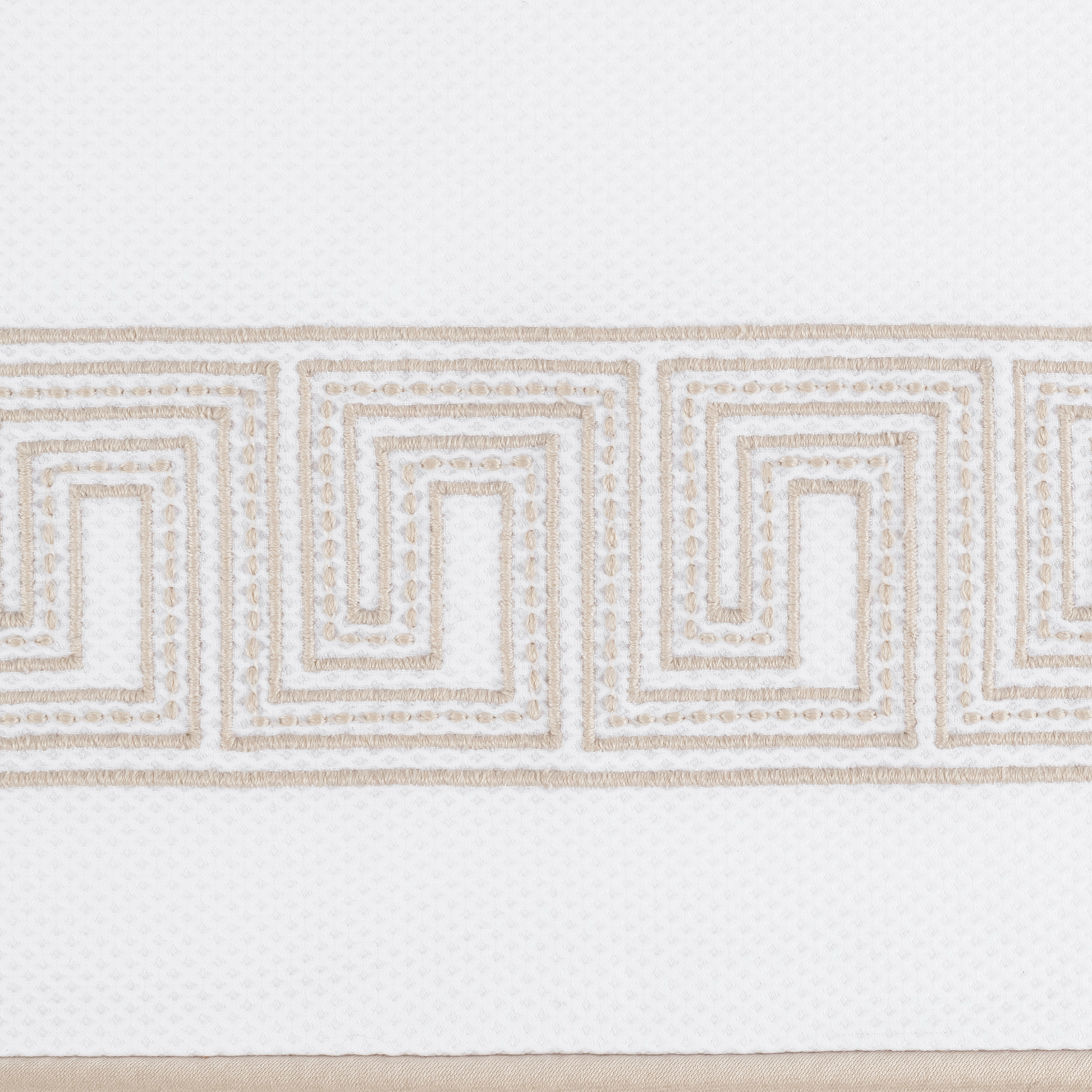 The Matouk Schumacher Ophelia Pique Coverlets and Shams draw inspiration from an intricately beaded Schumacher tape, featuring a boldly embroidered traditional Greek key pattern with a refined, bespoke sensibility. Crafted from Matouk's signature lightweight, small-weave pique fabric, these coverlets showcase a coordinating corded edge in luxurious Nocturne sateen, offering a sophisticated yet playful reinterpretation of a classic motif.