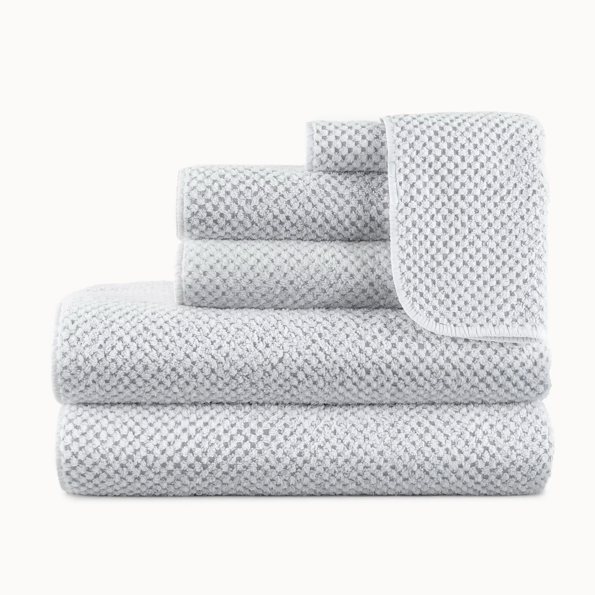 Experience the pinnacle of bath indulgence with the Peacock Alley Catalina towel collection, handcrafted in Portugal from the finest cotton. Woven with a zero-twist cotton using a yarn-dyed jacquard technique, these plush towels offer unparalleled softness and absorbency. Featuring a checkerboard pattern available in timeless white, sophisticated gray, and a calming linen hue; each towel features an elegant white trim and graceful rounded corners.