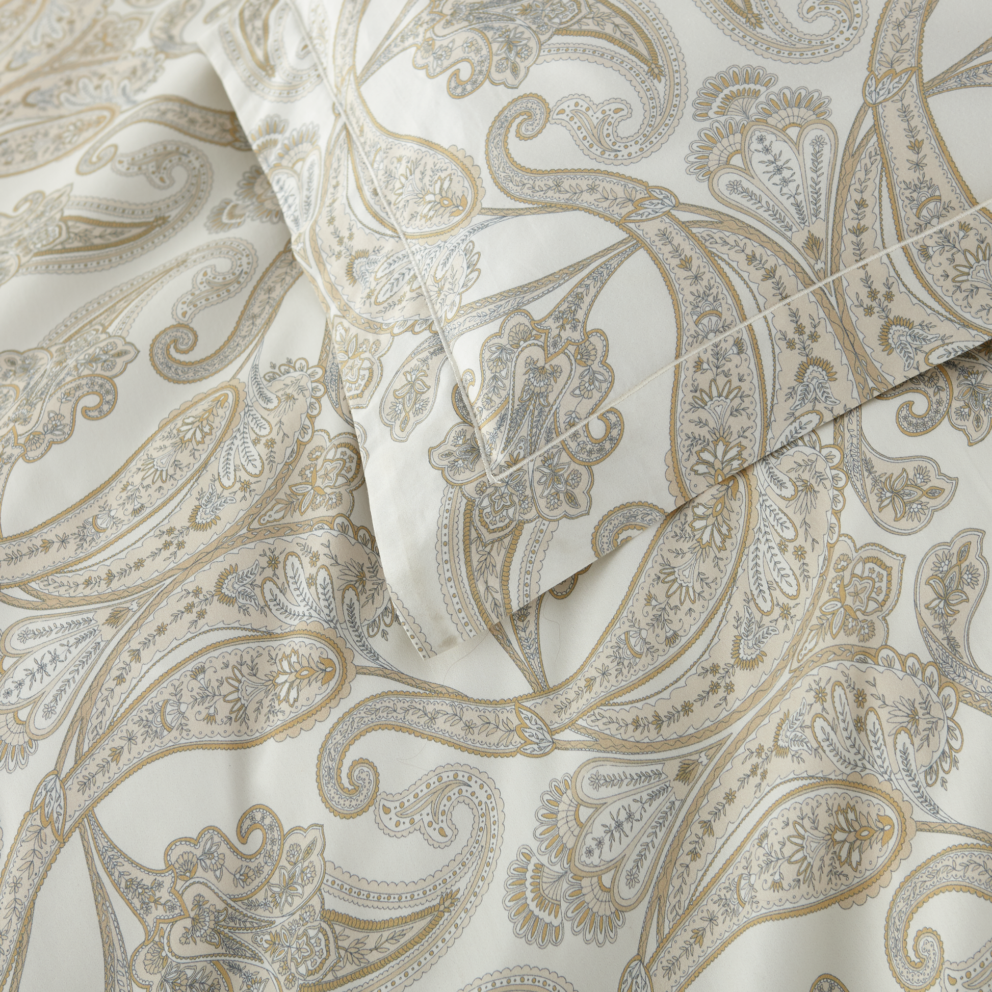 A twist on tradition, a classic style is refreshed with Peacock Alley's Paisley Duvet and Shams Set. Expertly crafted in Portugal from 100% cotton sateen, it glistens and drapes elegantly. The cascading printed pattern in tones of linen, ivory, pearl and taupe is forever chic and complements a variety of bedding looks.