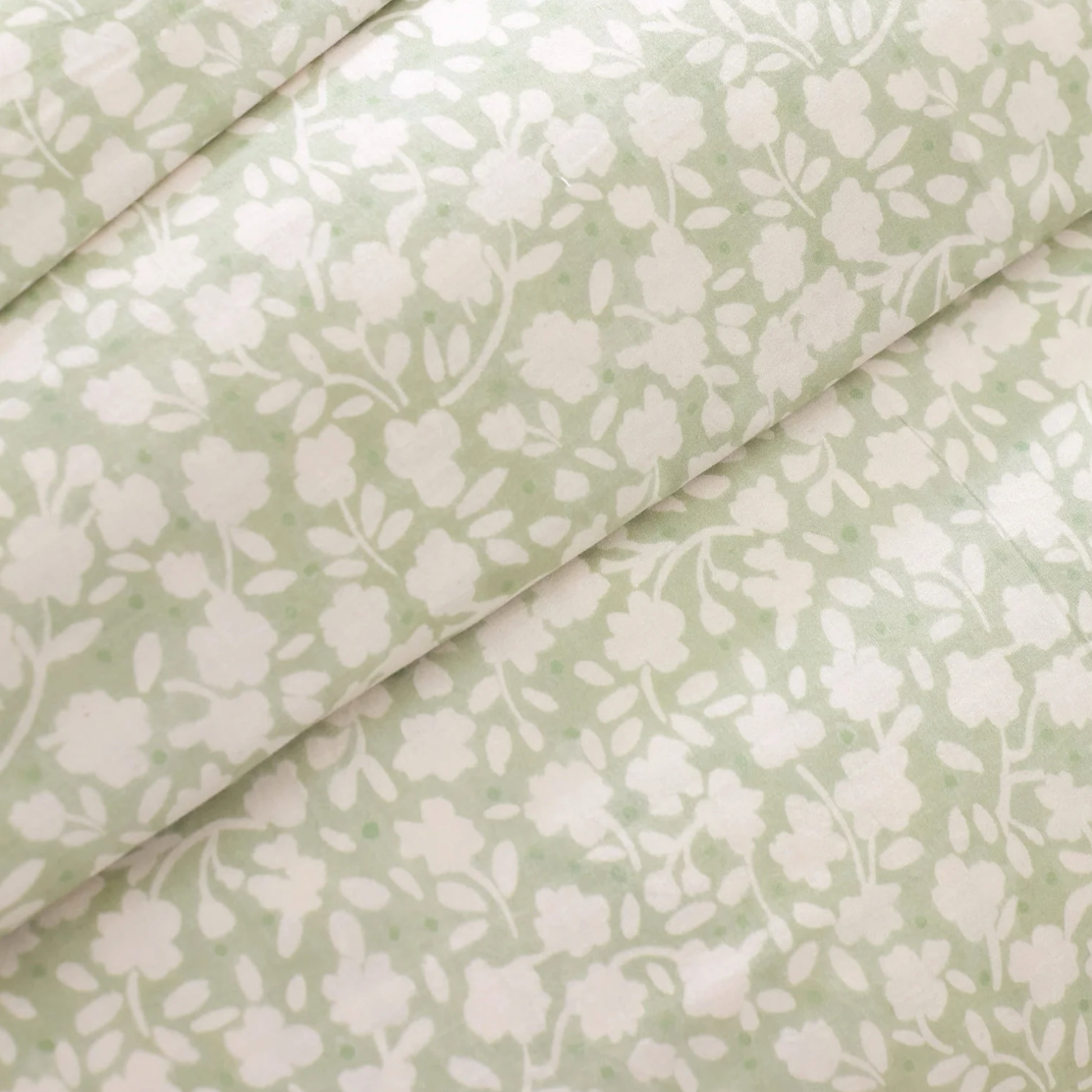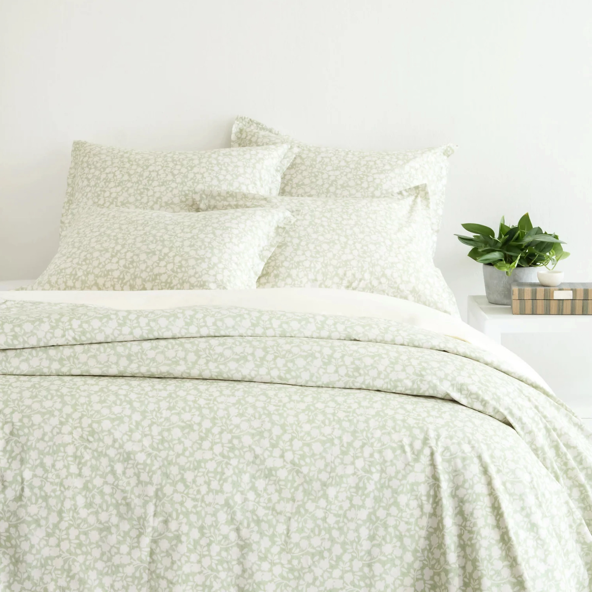 Pine Cone Hill's Aria Duvet Cover and Shams is crafted from 100% crisp, cotton percale that’s perfect for all sleepers. With a soft sage-green background and a delicate, ivory floral motif, it adds a fresh, inviting touch to your bed. Ideal for any time of year, it’s a charming choice for any bedroom.