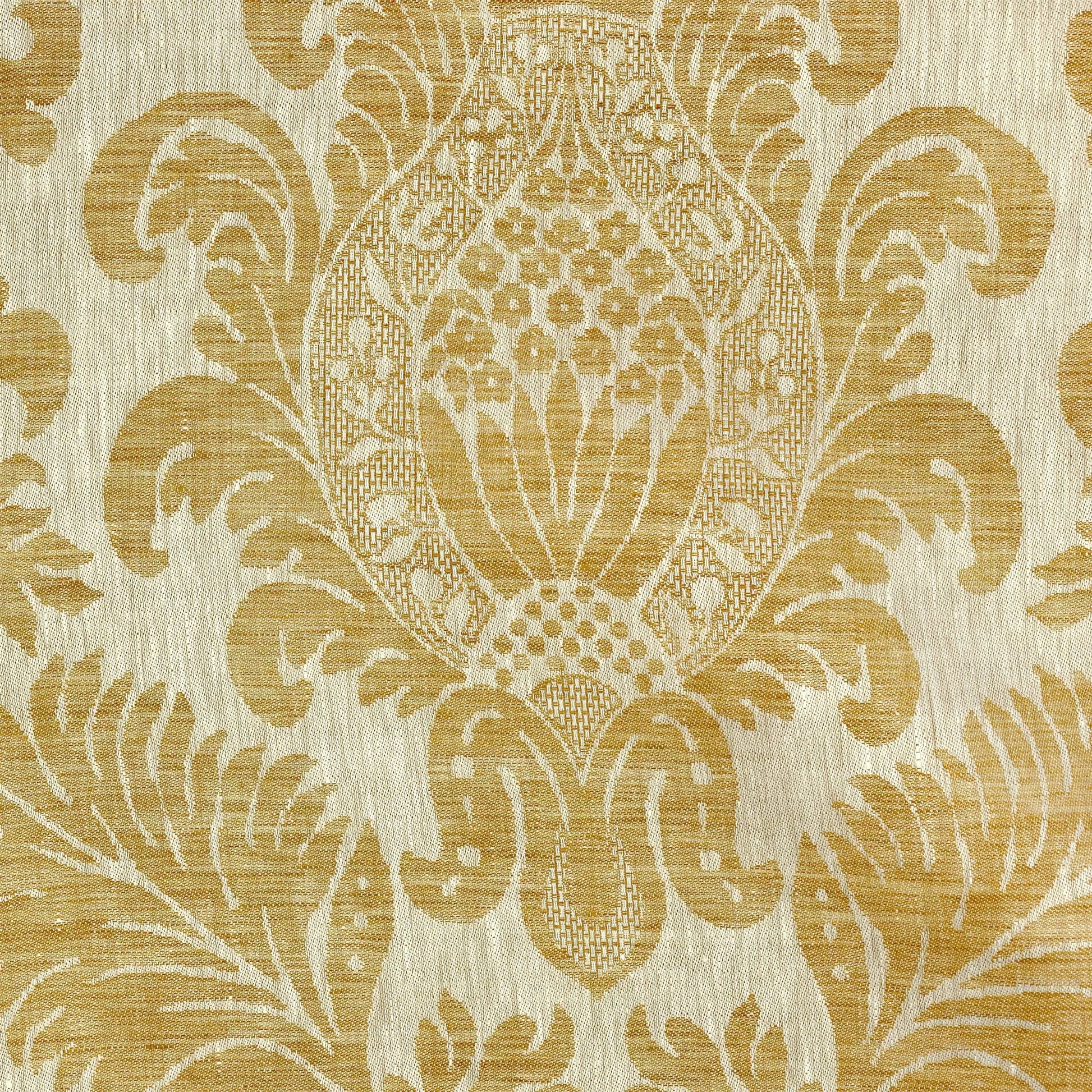 Design: Striking two-color yarn-dyed jacquard with a traditional damask motif