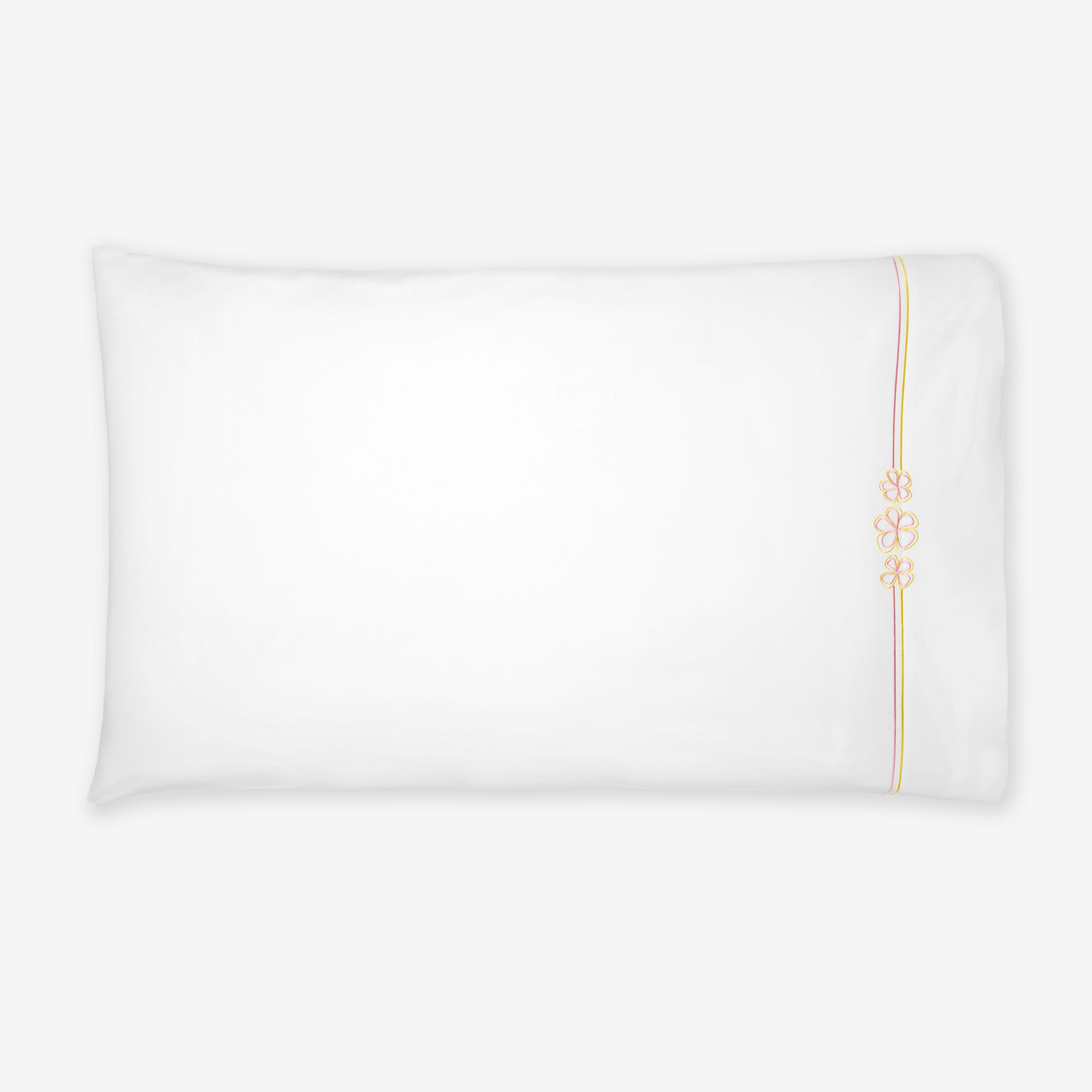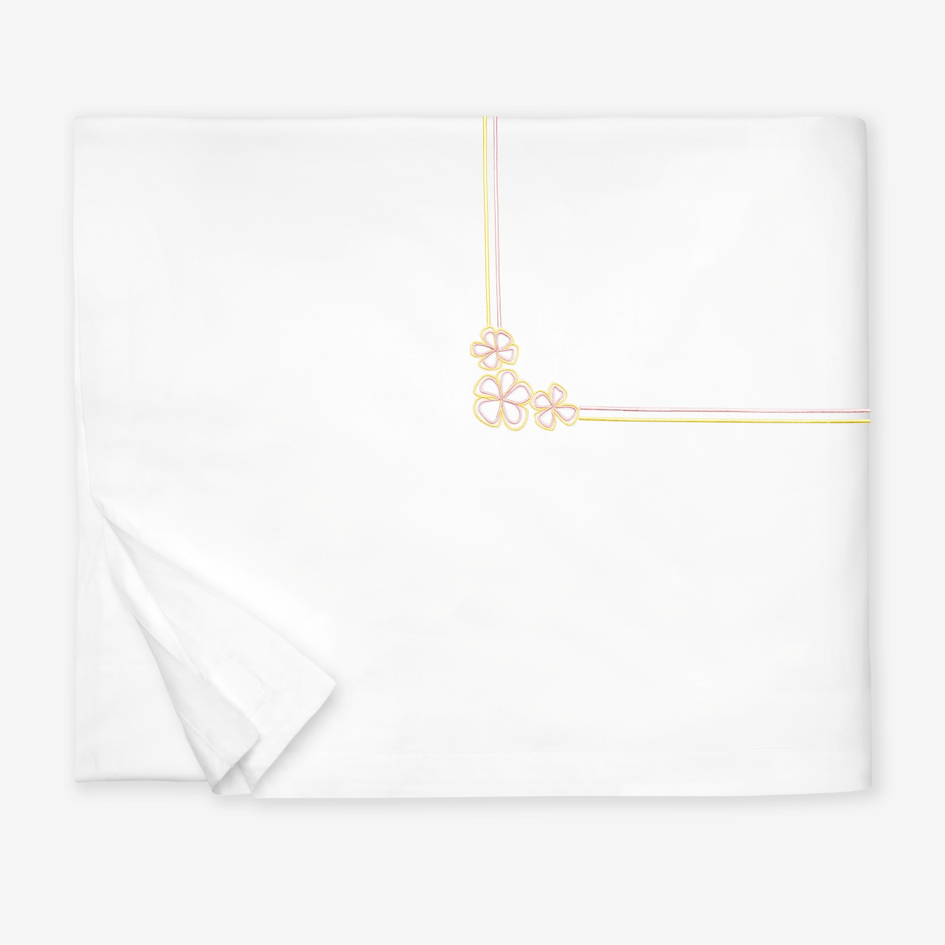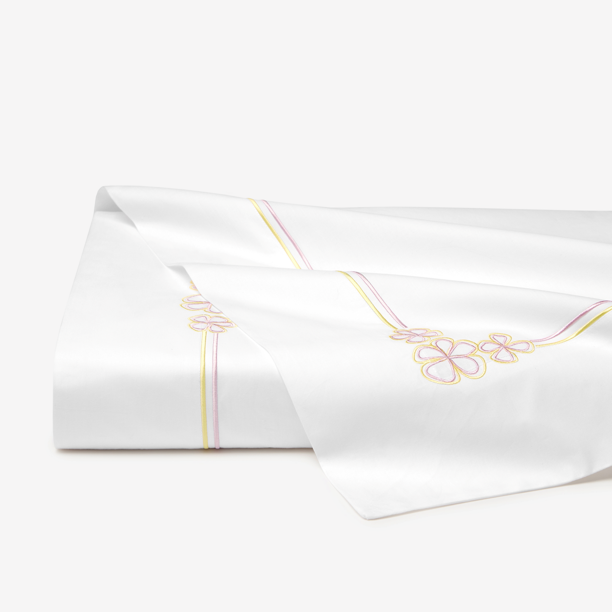 Sferra's Fiorina Bedding features a double border of yellow and pink satin-stitch, overlaid by yellow and pink blossoms. The coordinating Prato Bedding style features an irresistible all-over pattern of petal-pink and lemon-yellow flowers in full bloom. Coordinated together, Prato and Fiorina create a bed as bright as it is enchanting, sparking many a sweet dream to come.