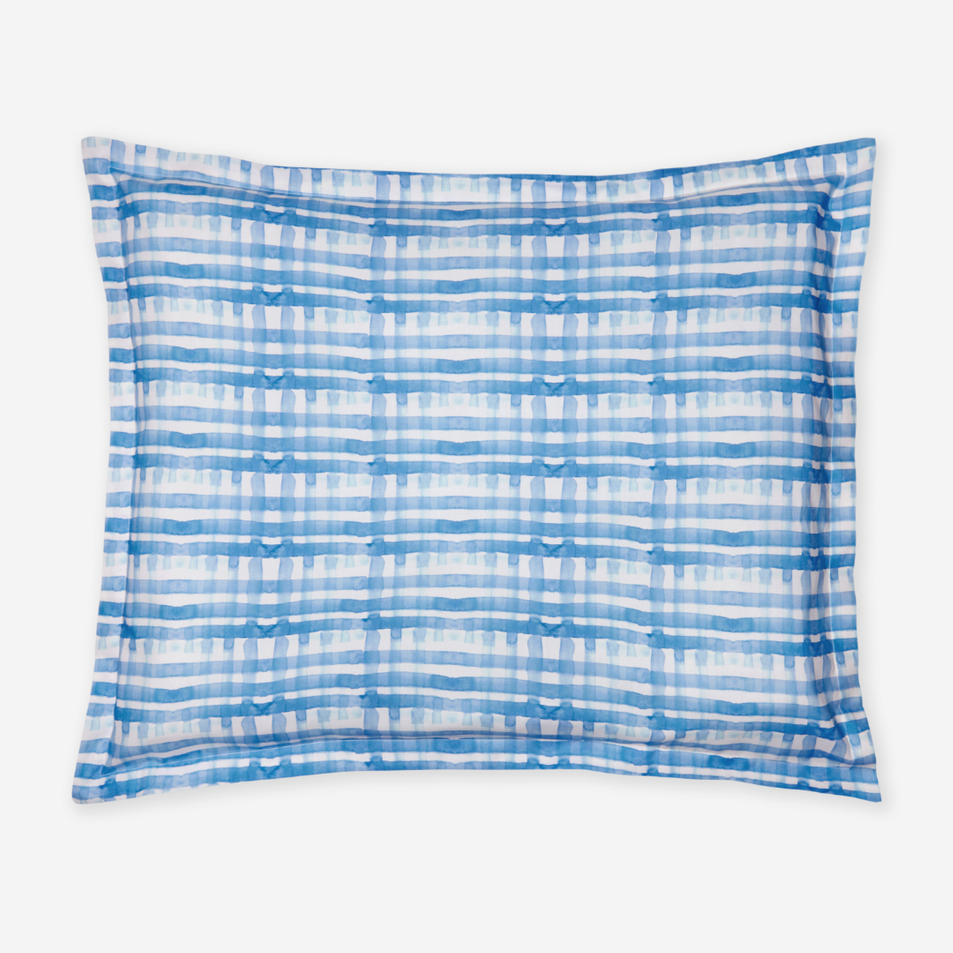 Sferra's Plaidino Bedding is a charming plaid collection in watercolor brushstrokes of French blue. In the coordinating Tratto, a double border of blue satin-stitch makes a stylish statement. Together, these pieces transform the bedroom into a serene blue sanctuary for any young adult.