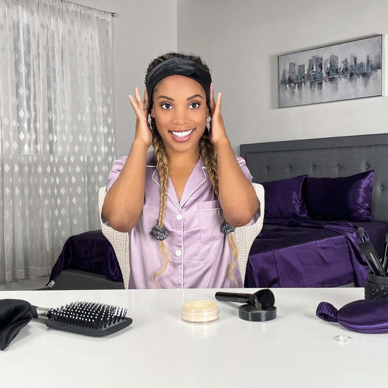 Pure Silk Glam Band: A Beauty Essential. Streamline your skin-care and makeup routine with these handy, stylish accessories: pure silk beauty bands. Mulberry Park Silks' Glam Bands are perfect for holding hair back during workouts, skin care treatments, and daily makeup application and removal. While a traditional makeup headband can tug and damage delicate regrowth at the hairline, this pure silk beauty headband is gentle, preventing breakage and damage. Silk also helps your hair and skin retain moisture and keeps your pricey hair and skin products where they belong! This luxurious spa headband with Velcro closure feels secure, yet smooth enough to slip in and out of hair without tugging. This 100% pure Grade 6A, Mulberry silk headband is handmade and makes a great gift.