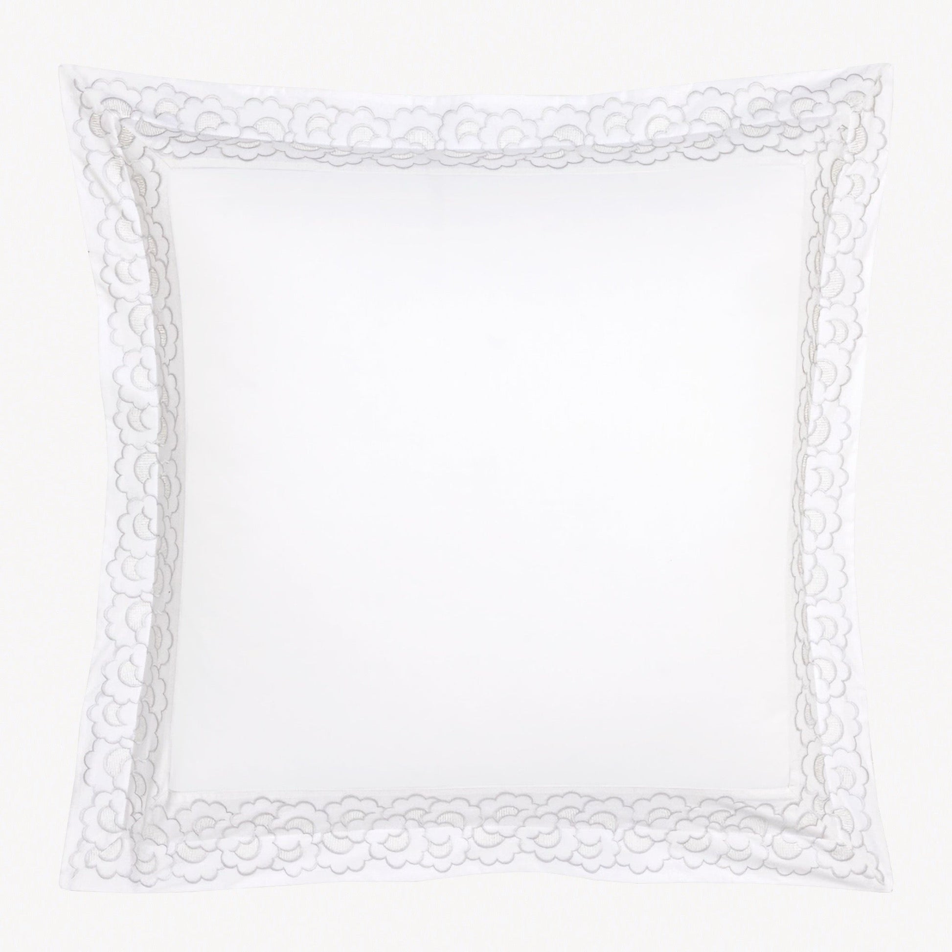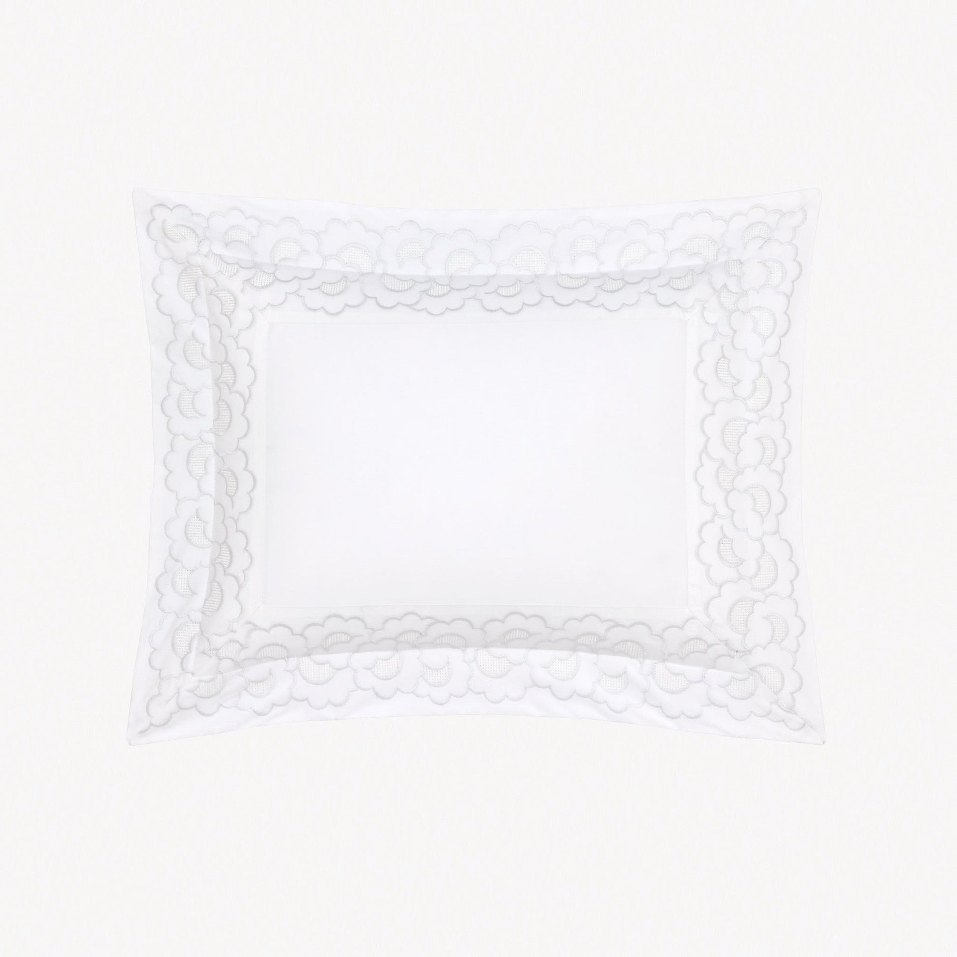 The Yves Delorme Festons Bedding Collection pays tribute to the elegance of the Roaring Twenties through airy floral embroidery, framed or appliquéd onto brilliant white sateen.