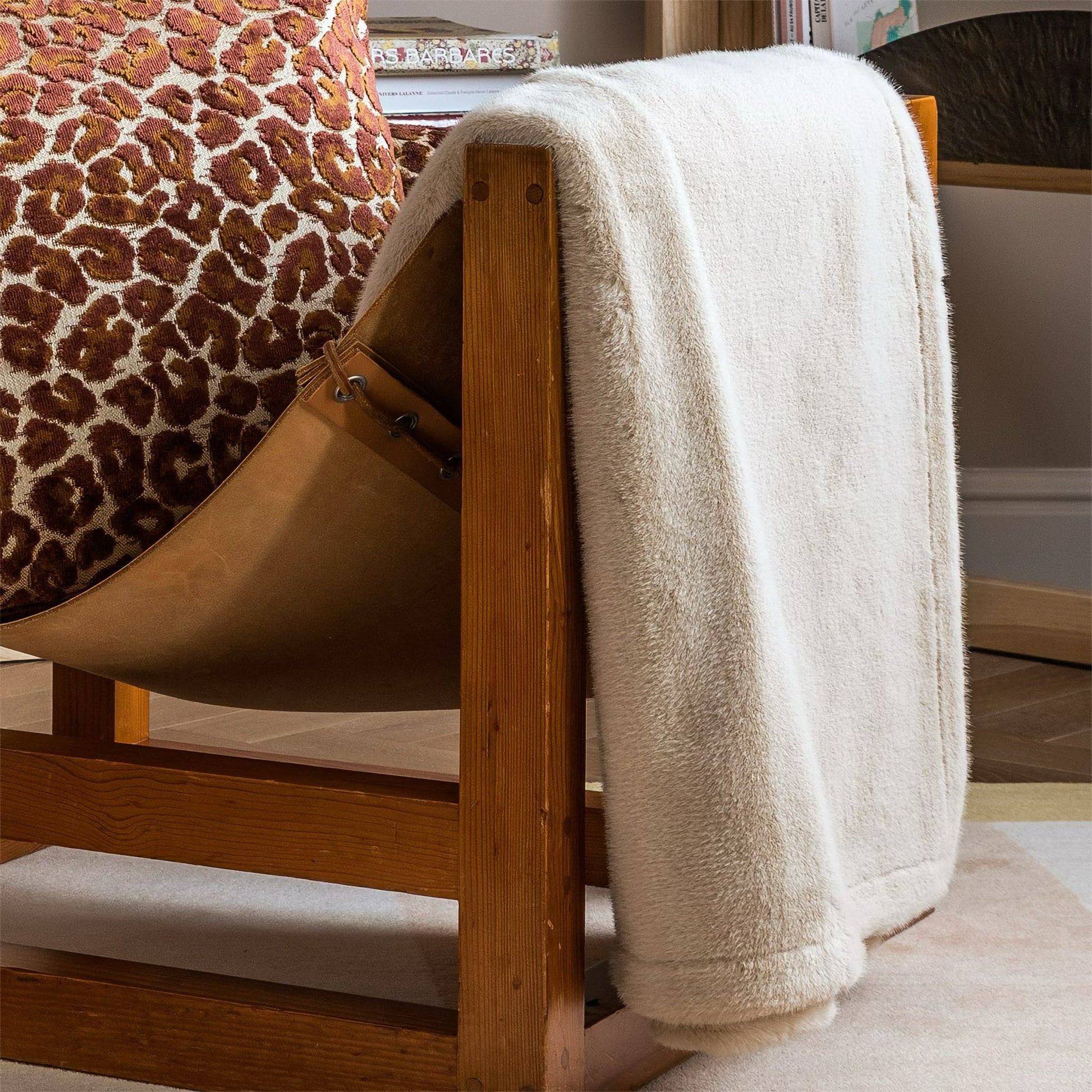 Crafted in luxurious faux fur, with a delicately velvety suede backing, it combines tactile elegance with ultimate comfort to enhance your moments of relaxation.