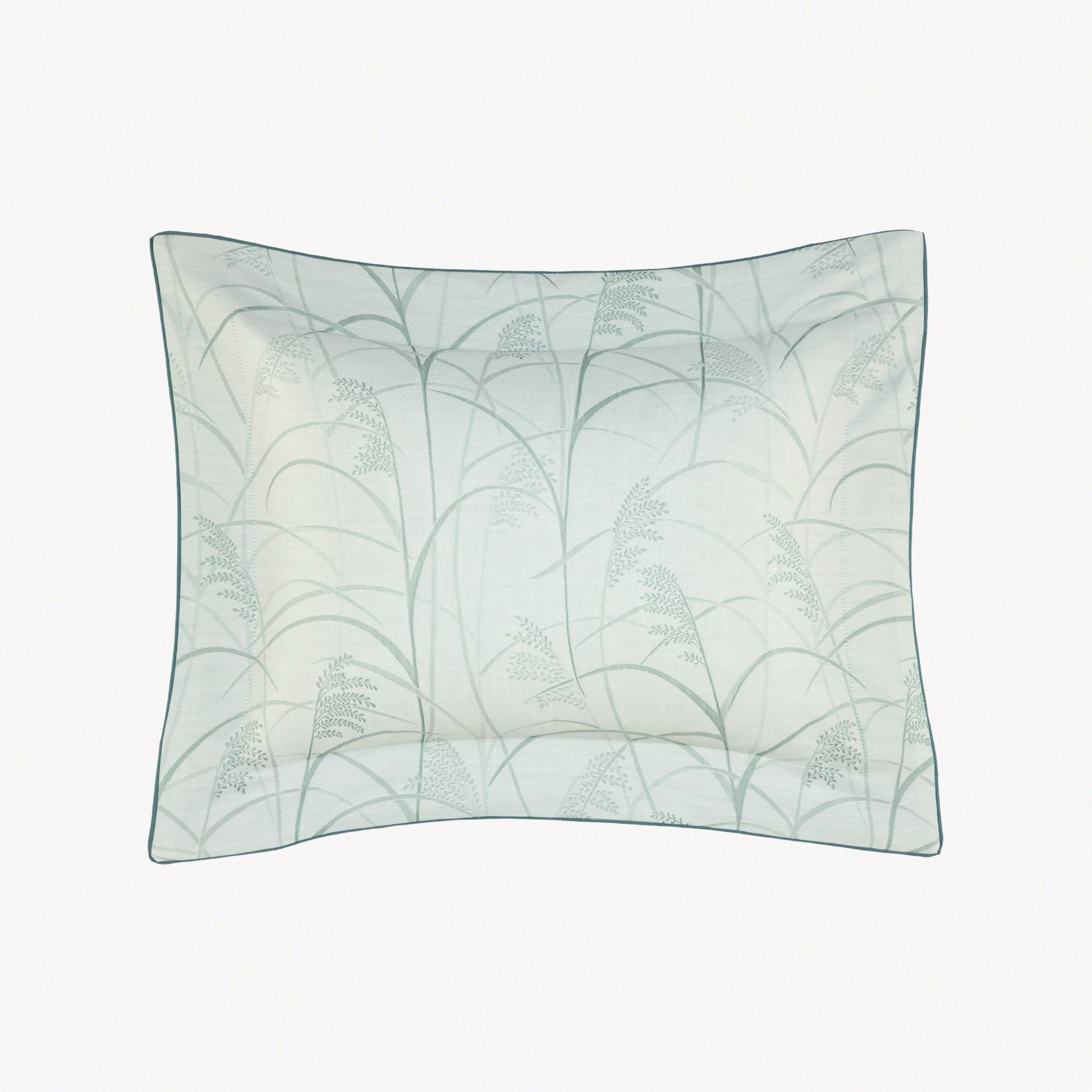 Between architectural lines and botanical softness, the Yves Delorme Graminee Bedding Collection draws inspiration from the Art Deco era to sketch a luminous landscape, where the geometry of grasses is subtly woven into a serene, contemporary pattern.