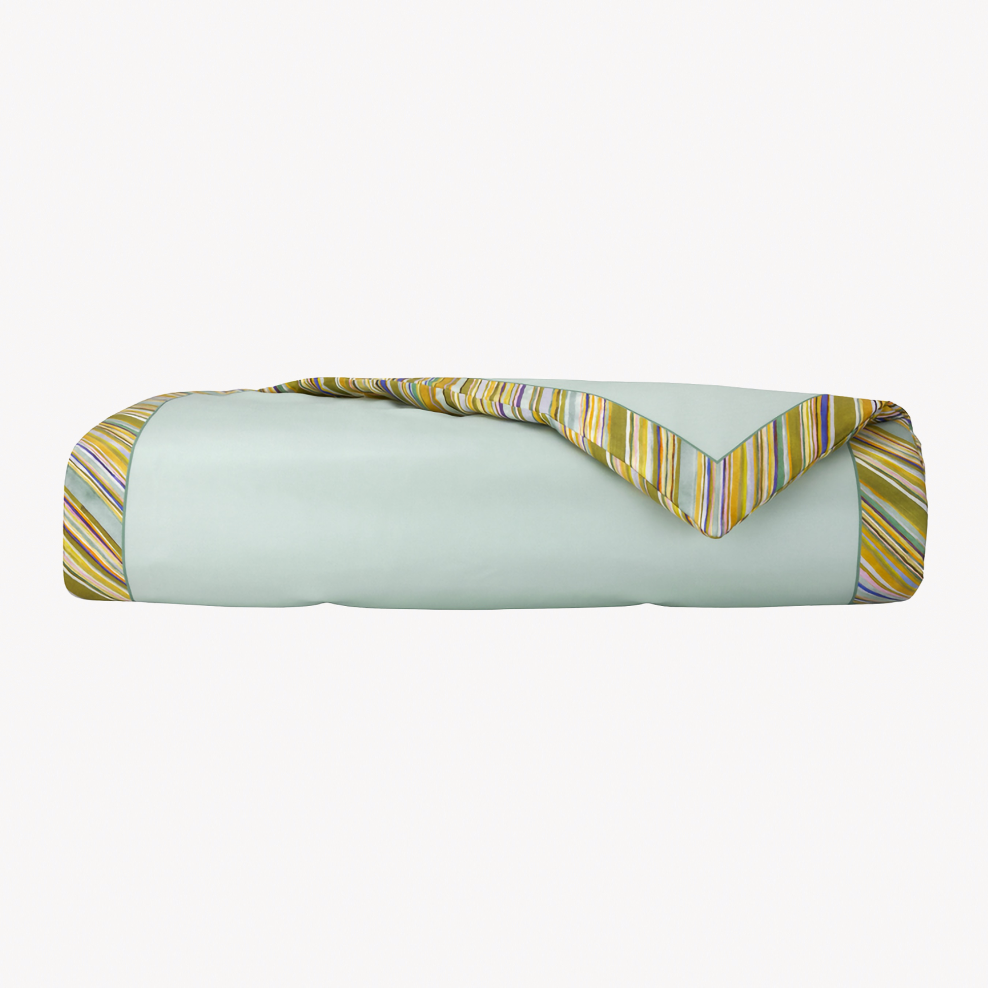 The Yves Delorme Luciole Bedding collection evokes unexpected bursts of light, a play of perceptions between the rustling of leaves and the fluttering of wings. With closed eyes, colors come alive in a dance of fireflies, blossoming into watercolor shades, from soft green to delicate lilac.